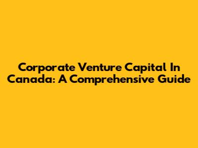 Corporate Venture Capital In Canada: A Comprehensive Guide