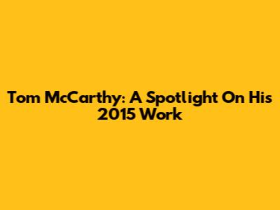 Tom McCarthy: A Spotlight On His 2015 Work