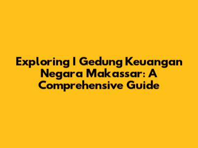 Exploring I Gedung Keuangan Negara Makassar: A Comprehensive Guide
