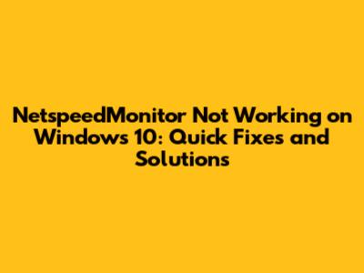 Common Reasons Why NetspeedMonitor Fails on Windows 10