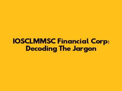 IOSCLMMSC Financial Corp: Decoding The Jargon