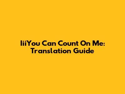 IiiYou Can Count On Me: Translation Guide