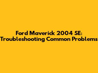 Ford Maverick 2004 SE: Troubleshooting Common Problems