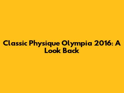 Classic Physique Olympia 2016: A Look Back