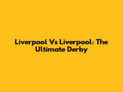 Liverpool Vs Liverpool: The Ultimate Derby