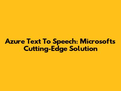 Azure Text To Speech: Microsoft's Cutting-Edge Solution