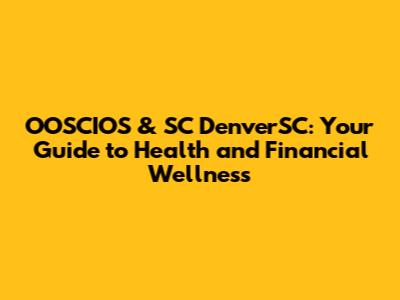 Financial Tips Tailored for OOSCIOS and SC DenverSC