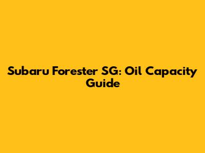 Subaru Forester SG: Oil Capacity Guide