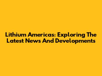Lithium Americas: Exploring The Latest News And Developments