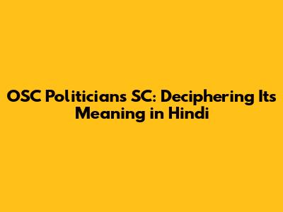 Hey everyone! Ever stumbled upon terms like "OSC Politicians SC" and wondered what they actually mean, especially in the context of Indian politics and in Hindi? Well, you're in the right place, guys! Navigating the intricate world of Indian social and political classifications can feel a bit like cracking a secret code, but trust me, understanding these terms is super important for anyone wanting to grasp the dynamics of the nation. When we talk about OSC Politicians SC meaning in Hindi, we're essentially diving deep into the representation and roles of specific social groups within the political landscape of India. It’s not just about a few letters; it’s about history, social justice, and the very fabric of Indian democracy. This article is gonna break it down for you, making it simple, straightforward, and totally understandable.