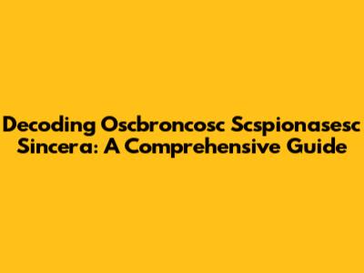 Decoding Oscbroncosc Scspionasesc Sincera: A Comprehensive Guide
