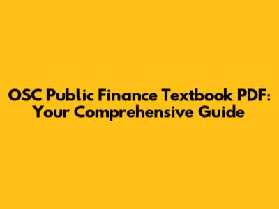 Finding the right OSC Public Finance Textbook PDF is a crucial first step in mastering this important subject. Remember to look for comprehensive coverage, clear explanations, up-to-date information, and real-world examples. Explore online libraries, university websites, and online forums to find your ideal resource. And don't forget to supplement your textbook with other materials like academic journals, government publications, and online courses.