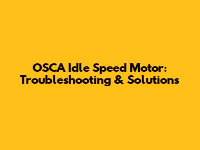 OSCA Idle Speed Motor: Troubleshooting & Solutions