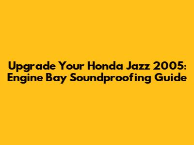 Upgrade Your Honda Jazz 2005: Engine Bay Soundproofing Guide
