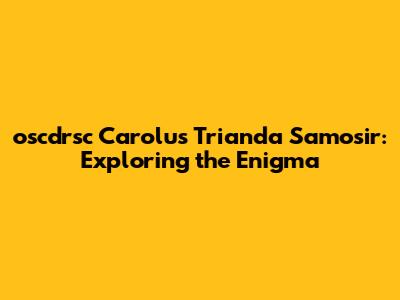 Let's dive deep into the intriguing world of oscdrsc Carolus Trianda Samosir! This name, shrouded in a bit of mystery, sparks curiosity and invites exploration. In this article, we're going to unpack everything we can about it, looking at potential origins, meanings, and any related contexts. Whether you're a seasoned researcher or just stumbled upon this term, get ready for a fascinating journey of discovery. We aim to provide a comprehensive overview, making it easy for everyone to understand and appreciate the nuances surrounding "oscdrsc Carolus Trianda Samosir." So, buckle up and let’s get started!
