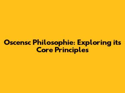 Key Principles of Oscensc Philosophie