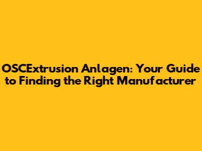 Key Factors to Consider When Selecting an OSCExtrusion Anlagen Manufacturer