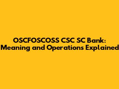 Demystifying OSCFOSCOSS CSC SC Bank: The Full Form