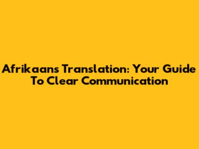 Afrikaans Translation: Your Guide To Clear Communication