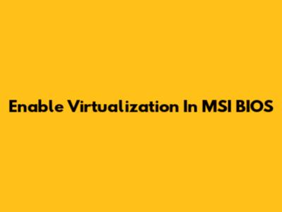 Enable Virtualization In MSI BIOS