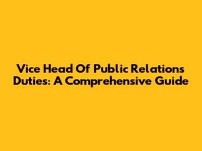 Vice Head Of Public Relations Duties: A Comprehensive Guide