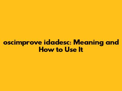 Understanding the Basics of oscimprove idadesc