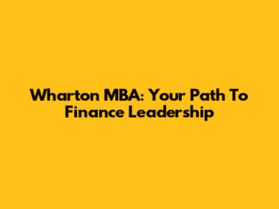 Wharton MBA: Your Path To Finance Leadership
