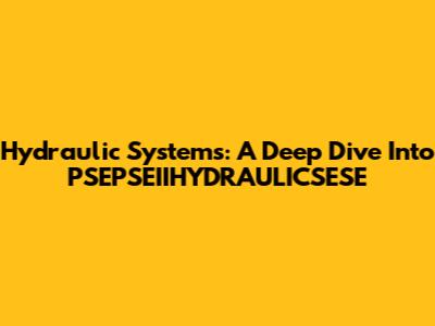 Hydraulic Systems: A Deep Dive Into PSEPSEIIHYDRAULICSESE