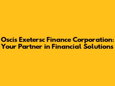 Hey guys! Ever heard of Oscis Exetersc Finance Corporation? If you're navigating the complex world of finance, you've probably stumbled upon this name. Let's dive deep into what makes Oscis Exetersc Finance tick and how they could be your go-to partner for all things finance. Whether you're a seasoned investor or just starting out, understanding the ins and outs of financial corporations like Oscis Exetersc is super important. So, buckle up, and let's get started!