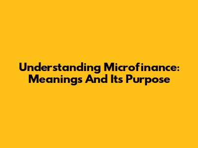 Understanding Microfinance: Meanings And Its Purpose