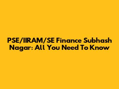 PSE/IIRAM/SE Finance Subhash Nagar: All You Need To Know