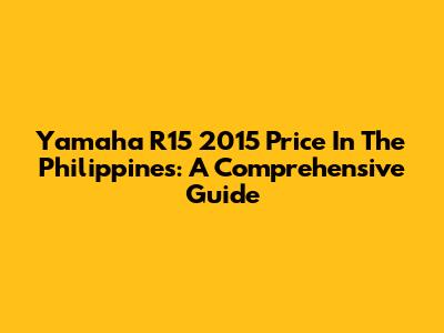 Yamaha R15 2015 Price In The Philippines: A Comprehensive Guide