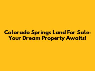 Colorado Springs Land For Sale: Your Dream Property Awaits!