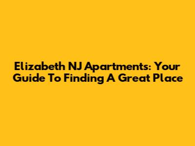 Elizabeth NJ Apartments: Your Guide To Finding A Great Place