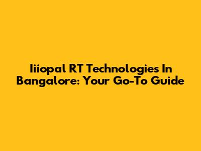 Iiiopal RT Technologies In Bangalore: Your Go-To Guide