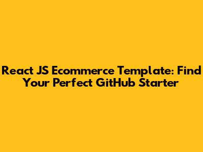React JS Ecommerce Template: Find Your Perfect GitHub Starter