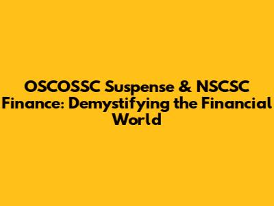 Hey everyone! Ever stumbled upon financial terms like OSCOSSC Suspense and NSCSC Finance and felt a little lost? Don't worry, you're definitely not alone! These terms, while crucial in the financial landscape, can sometimes sound like a different language. This article is designed to be your friendly guide, breaking down these concepts in a way that's easy to grasp. We'll explore what these terms mean, why they matter, and how they fit into the bigger picture of finance. So, grab a cup of coffee, and let's dive in together. We're going to make this journey through the financial world not only understandable but also, dare I say, a little bit fun! Let's get started, shall we?