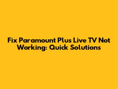 Fix Paramount Plus Live TV Not Working: Quick Solutions