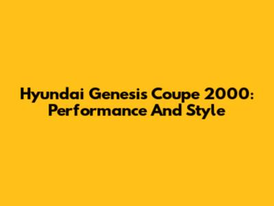 Hyundai Genesis Coupe 2000: Performance And Style