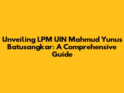 Unveiling LPM UIN Mahmud Yunus Batusangkar: A Comprehensive Guide