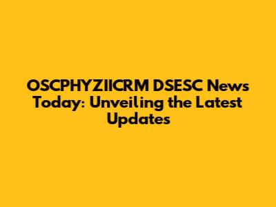 Deep Dive into OSCPHYZIICRM DSESC's Recent Activities