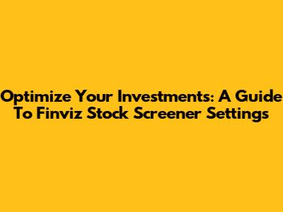Optimize Your Investments: A Guide To Finviz Stock Screener Settings