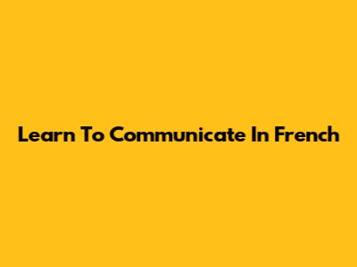 Learn To Communicate In French