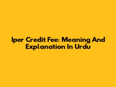 Iper Credit Fee: Meaning And Explanation In Urdu