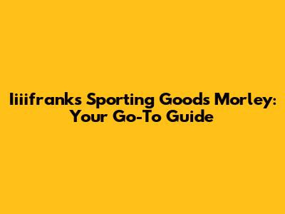 Iiiifranks Sporting Goods Morley: Your Go-To Guide