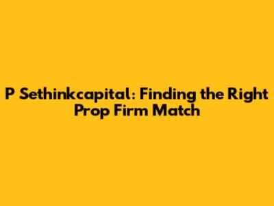 Matching with the right proprietary trading firm is a critical step for any trader looking to advance their career and achieve financial success. P Sethinkcapital offers a valuable service by providing a comprehensive and personalized matching process that considers each trader's unique skills, experience, and goals. By understanding the prop firm landscape, evaluating key considerations, and leveraging P Sethinkcapital's expertise, traders can significantly increase their chances of finding a firm that aligns with their needs and provides a supportive environment for growth. Whether you're a seasoned professional or just starting out, taking the time to find the perfect prop firm match can make all the difference in your trading journey. Remember to focus on firms with good reputations, robust trading platforms, and supportive mentorship programs. Good luck, and happy trading!