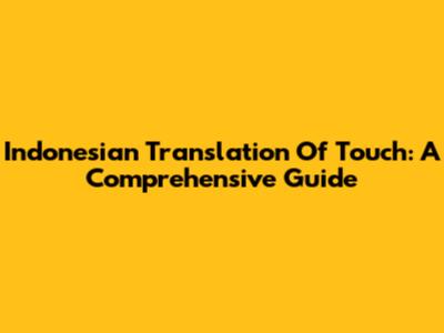 Indonesian Translation Of 'Touch': A Comprehensive Guide