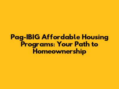 Key Affordable Housing Programs by Pag-IBIG