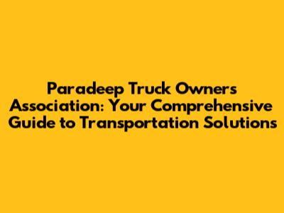 Hey there, fellow logistics enthusiasts and transportation aficionados! Let's dive deep into the world of the Paradeep Truck Owners Association (PTOA). This article is your ultimate guide, covering everything you need to know about this vital organization, the services they offer, and their impact on the transportation industry in Odisha, India. Whether you're a seasoned truck owner, a new entrant in the trucking business, or simply curious about the logistics landscape, this is the place to be. We'll explore the PTOA's role in the supply chain, the benefits of membership, the challenges they face, and the future of trucking in Paradeep and beyond. Buckle up, because we're about to embark on a fascinating journey!