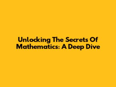 Unlocking The Secrets Of Mathematics: A Deep Dive